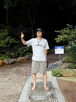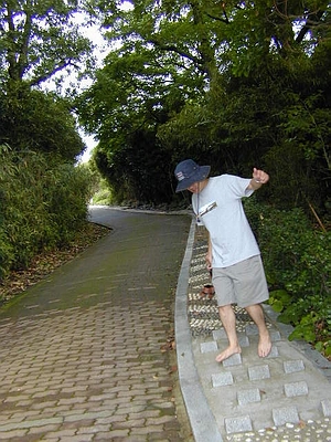 건강을 위한 지압 코스를 맨발로 걷고 있는 유성재. (난 발바닥이 아파서 중간에 포기)