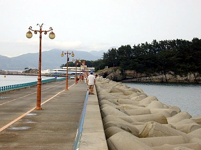 오동도라는 섬을 가기 위해선 긴 방파제를 지나야 한다. 방파제 위의 성재와 현우.