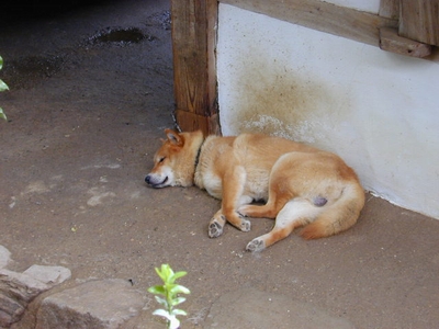 녹우당에서 자고 있던 견공. 진돗개인 듯. 진도가 가까워서 그런지 보이는 대부분의 개가 진돗개로 보였다.