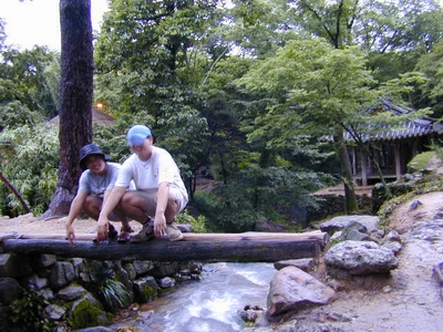나무로 만든 다리 위에서 이상한 자세로. 성재와 현우