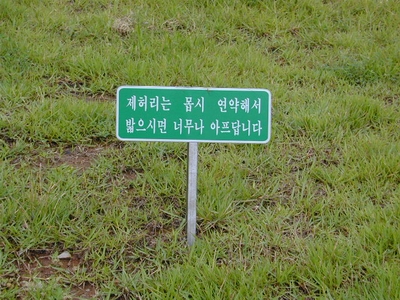 잔디밭에 꽂혀있던 팻말. 현우가 너무 동감이 간다면서 사진을 찍자고했음. –;
