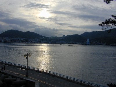 오동도에서의 일몰. 바닷쪽으로의 일몰이었으면 더 멋진 사진이 됐을텐데.