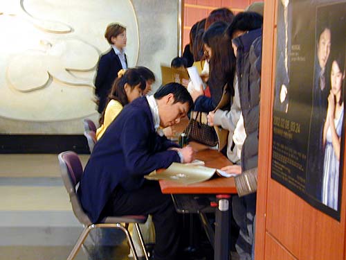 공연을 컨벤션센터에서 해서 좌석은 그리 좋지 않았습니다. 줄마다 계단식으로 된 좌석이 아니라 1~5번째 줄까지는 같은 높이, 6,7번째줄이 같은 높이… 이런 식으로 돼있는 어설픈 계단식 좌석(좌석도 그냥 이동식 의자)이라 앞 사람 머리에 가려서 무대가 안보이는 일도 잦을 것 같았습니다. 전 8번째 줄인가 9번째 줄이었는데, 무대에서 좀 먼 느낌이 들었습니다.