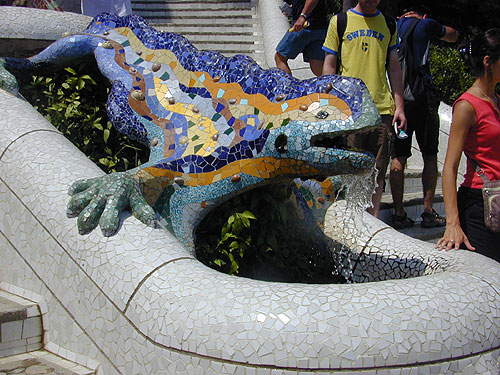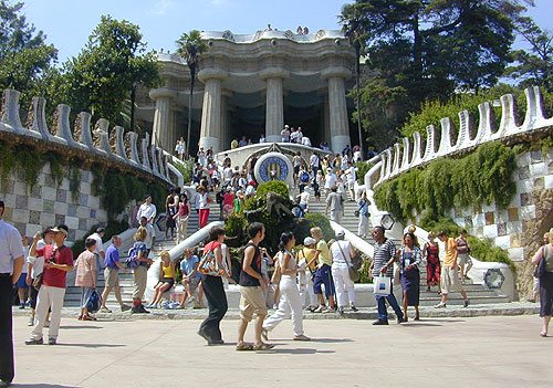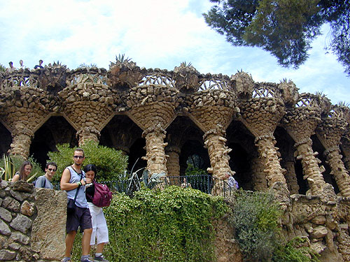 구엘은 가우디의 물주입니다. 당시 구엘은 바르셀로나 교외의 언덕에 땅을 사서 계획 마을을 만들려고 생각하고, 가우디에게 설계를 맡겼는데, 마을 안의 집은 분양이 안되고, 돈 문제도 생겨서 결국 실패, 건축도 중단됐다고 합니다. 이후에 이 자리가 공원이 됐는데, 이게 바로 구엘 공원입니다.