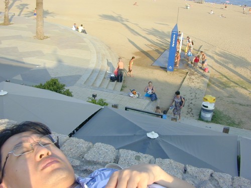 공원에서 운동하는 사람들, 연애하는 사람들, 놀러나온 가족들 등등을 지나치며 공원을 대충 한바퀴 돌아보고 공원 입구 벤치에 좀 앉아서 쉬다 보니 (아침부터 걸어서 아주 힘들었다) 배가 고파왔다. 어디 가서 밥을 먹을까 고민을 하다가 바르셀로네타 해변 옆 Port Olimpic (올림픽 선수촌 앞 항.. 뭐 이런 뜻이 아닐가 싶다)에 식당이 많을 것 같다는 도길이의 말에 따라 그곳으로 가기로 결정하고 벤치에서 일어섰다. 길가 매점에서 하드 하나씩 사먹고 (하드 하나가 우리 돈으로 2~3천원이나 했음) 트램을 타고 다시 동물원 입구에 도착했다. 거기서 큰 길을 몇개 건넜더니 바르셀로네타 해변에 도착.