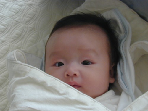이 사진은 10월 29일에 찍은 사진. 병원에 예방접종 하러 가기 전에 겉싸개로 싸놓은 상태로 찍은 사진입니다. ‘가현뻔데기’ 사진이라고 불리죠.