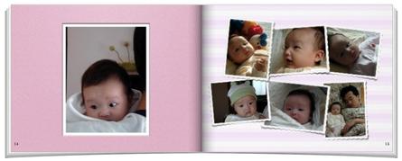 잡스가 키노트에서 극찬한 개선된 사진첩 만들기 기능도 마음에 들었습니다. 잡스의 키노트에서는 미국 뿐 아니라 전세계에서 사진첩 주문을 할 수 있다고 했는데 apple.com에 들어가 보니 미국, 일본, 그리고 EU의 몇개국에만 해당하는 얘기라서 많이 아쉬웠습니다. 몇일 전 애기 백일 사진 찍으러 사진관에 갔더니 이런 류의 앨범을 만드는데 꽤 비쌌거든요. iPhoto에서 주문할 수 있는 사진첩은 그에 비하면 꽤 경제적일 것 같습니다. 8.5*11인치 20장자리 하드커버 사진첩이 US$30, 소프트커버 사진첩은 US$20 정도니까요. 애기 있는 집에서는 필히 유용한 서비스일텐데 국내에서 서비스 안된다는 점이 많이 아쉽네요. 아래 그림은 iPhoto5에서 우리 애기 사진 몇장을 골라 원터치로 사진첩을 만든 결과입니다. 아주 예쁘군요. 실제로 주문을 할 수 있으면 좋을텐데…