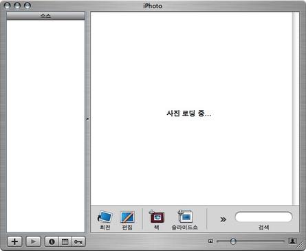 일단 iPhotoLibrary 폴더 이름을 딴 것으로 잠시 바꿔놓고 iPhoto5를 실행하니 라이브러리를 찾지 못한다는 메시지가 떴습니다. 새로운 라이브러리를 만들라고 하니깐 아무 사진도 없는 iPhoto5가 시작됐습니다.