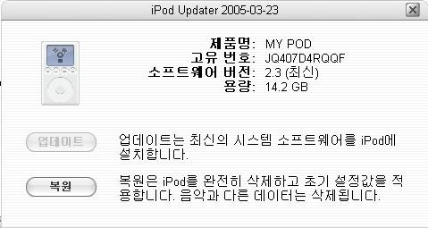 또 이참에 iPod에 들어가는 소프트웨어도 최신 버전으로 업데이트 하려했다.