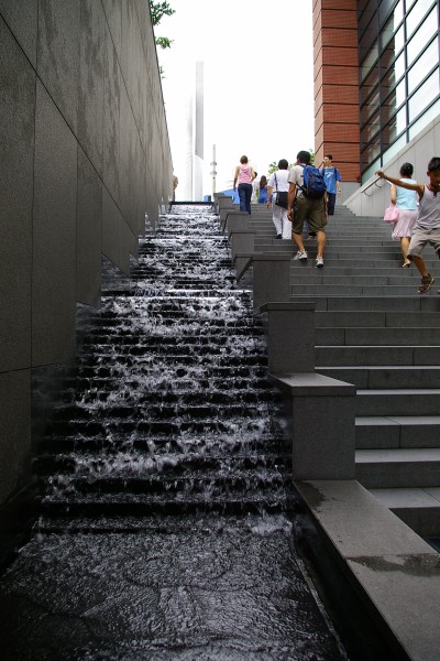 아내 퇴근 시간이 다 돼 가서 쿠키를 사러 서점 밖으로 나갔습니다. 그런데 서점 출구 쪽의 계단 옆으로 물이 콸콸콸콸 흐르네요. 보기만 해도 시원했습니다.