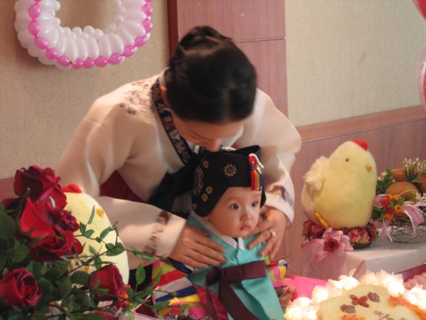▲ 돌상앞에서 사진을 찍기 위해 준비 중