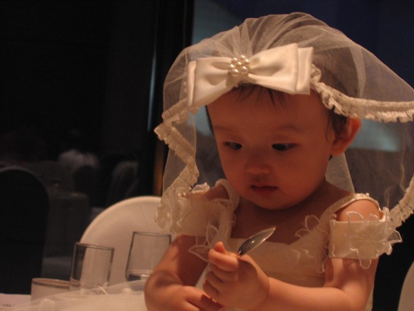 ▲ 머리 장식을 바꾼 가현. 여전히 스푼을 가지고 놀고 있습니다. 사람들은 가현이 시집가나보다고 웃더군요