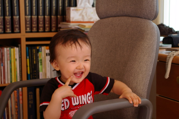 요건 가현이가 의자에 앉아 웃는 모습. 저 포즈를 ‘이쁜짓’이라고 부릅니다. 가현이에게 “이쁜짓 해봐”라고 하면 가현이가 손가락으로 볼을 누르며 저런 포즈를 잡습니다.