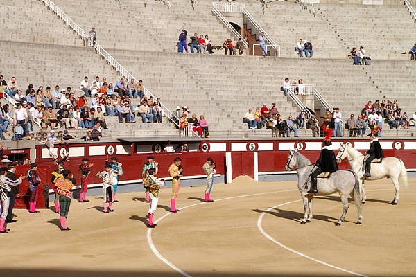 시작 시간이 되면 빵빠레가 울리며 오늘의 출연진이 등장한다. 하루에 여섯 경기를 하는데 세명의 투우사가 나온다. 즉, 각 투우사가 두번씩 등장하고 총 여섯 마리의 소가 오늘 경기에 죽어 나가는 것이다.