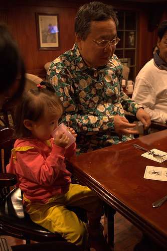 추석 전날 밤에 O’Kims에서 어른들은 맥주 마실 때 가현이는 물 마시고.