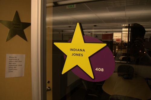 회의실이다. 내가 있는 건물의 4층에 있는 회의실 이름은 모두 영화 주연들의 이름이다. 그래서 인디아나 존스나 슈퍼맨 등등의 회의실이 있다. 옆 건물의 내가 잘 가는 한 층은 전자오락 이름을 회의실 이름으로 쓴다. “돈키콩”에서 매주 월요일에 회의를 했었다.