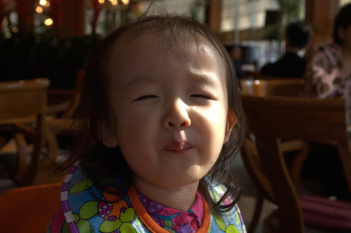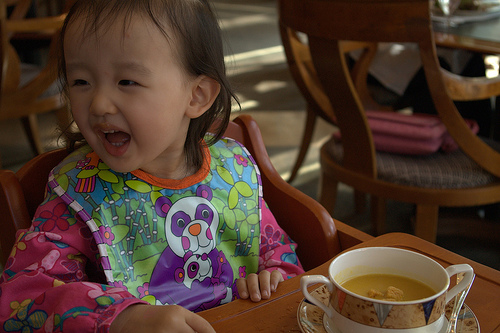 하지만 실상은 이렇게 우아하게 밥을 다 먹지는 않았다. 후식 먹을 때 딸에게 파인애플을 하나 먹여줬더니 파인애플을 더 먹겠다고 했다. 하지만 식사 시간이 다 끝나 더 이상 파인애플을 가져올 수 없어 파인애플이 없다고 했더니 딸은 땡깡을 부리며 유리잔에 든 얼음물을 팍! 쏟는 만행을 저질렀다. –; 게다가 식사 후 쉬하고 싶다고 해서 엄마랑 화장실엘 갔는데, 변기에 앉기 전에 서서 쉬를 해버리기도 했다. ㅠㅠ