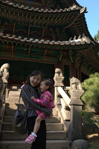 사진 다 찍고 교회에 가기 위해 차에서 예비로 가지고 갔던 팬티를 입혔는데, 교회로 가는 도중 가현이는 또 한번 엄마품에 안겨서 쉬야를 했다. -_-; 그야말로 아내는 딸의 쉬로 뒤범벅이 된 하루. 결국 새로 입혔던 속옷도 벗기고 발레할 때 입은 스타킹만 신고 교회는 갔다.