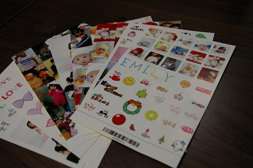 꾸미기 스티커란 제품은 이용자가 선택한 사진이나 글자로 스티커를 만들어주는 서비스라고 한다. ‘꾸미기 스티커 A6’와 ‘꾸미기 스티커 A5’란 제품이 있는데 차이점은 아마 종이의 크기인 듯. A6는 흔히 쓰는 A4용지를 두번 접은 크기(일반 사진 크기 정도)고 A5는 A4용지를 한번 접은 크기다.
