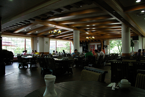 애 둘을 데리고 이 매장 저 매장을 구경다녔는데 조금 지나니 첫째는 힘들어 못걷겠다고 난리다. 둘째는 말은 못하지만 힘들어하는 기색이 역력해 보였다. 그래서 내가 두 아이를 데리고 식당에서 기다리고 있으면 한시간 동안 아내가 쇼핑을 마치고 돌아오기로 결정했다.