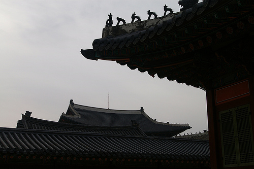 경복궁의 역사를 간단히 말하면 조선 초기에 지어진 후 임진왜란 때 홀라당 타버렸다. (왜놈들 때문에 탄 것도 있지만 조선인 난민들이 불태운 듯;;;) 한동안 내버려져 있다가 고종 때 중건. 그러다가 일제가 훼손. 위 사진의 근정전은 고종 때 중건된 후 남아있는 건물. 한국 최대의 목조 건물이란다.