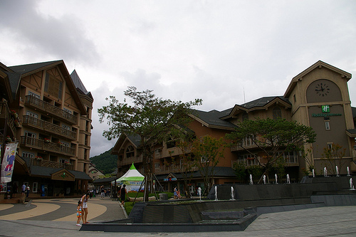 2018년 평창 동계올림픽의 주무대가 될 알펜시아의 리조트 부분은 동쪽에서 서쪽으로 홀리데이인 리조트 (호텔), 홀리데이인 스위트 (콘도), 인터컨티넨탈 (호텔)로 구성돼 있다. 남쪽으론 스키 슬로프(지만 여름이라 풀밭)가 있고, 동쪽으론 오션700이란 워터파크가 있다. 그 외에 컨벤션센터, 콘서트홀도 함께 있다. 지은 지 얼마 안 된 시설이라 깔끔하지만 사람이 별로 없다는 건 장점이자 단점이다. 실제로 리테일 거리라고 불리는 상가엔 영업을 안하는 점포도 많았다.