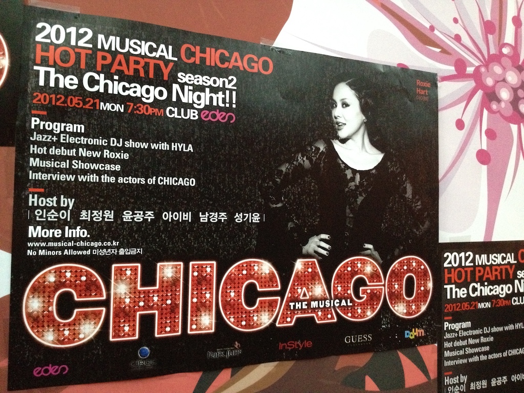 뮤지컬 시카고 쇼케이스를 위한 파티가 리츠 칼튼 호텔 옆 클럽 에덴에서 있었다. 몇 년전만 해도 신시컴퍼니가 서초구청 강당 같은 곳에서 쇼케이스를 했는데 이젠 클럽에서 한다니, 세상이 참 많이 변했다.
