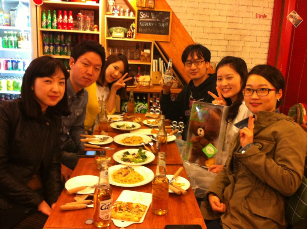 쫑파티는 회사 근처 스토브온에서. 곧 일본으로 가시는 선생님께는 라인 인형을 선물로 드렸다. 브라운을 가장 좋아한다고 해서 브라운으로 구입!