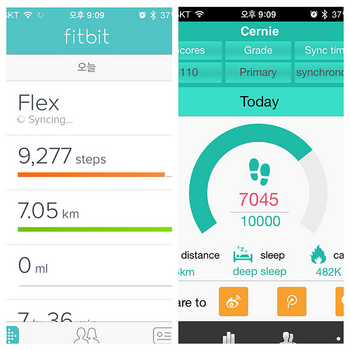오늘 하루는 핏빗 플렉스와 X5를 모두 차고 다녔다. 두 디바이스가 계산하는 걸음 수의 차이를 알아보기 위해서. 하루 종일 걸은 후 걸음 수를 비교해보니 차이가 꽤 난다! 무려 2500보 정도 차이가 난다. 어떤 수치가 더 정확한진 알 수가 없지만, 항상 핏빗 플렉스가 걸음을 좀 후하게(?) 계산하는 느낌이었기 때문에 X5의 걸음 수에 더 신뢰가 간다.