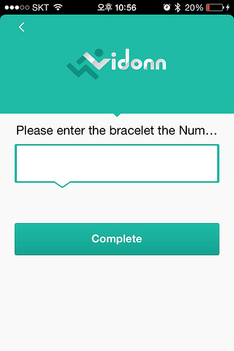나는 아이폰을 영문으로 놓고 쓰기 때문에 Vidonn 앱도 영문으로 표시됐는데 종이 설명서에서와 마찬가지로 앱의 영어 설명도 엉망. 아마 한국어도 지원할 텐데 한국어 설명은 어떨지 모르겠다. 아래는 앱과 밴드를 처음 동기화 할 때 뜨는 메시지. 도대체 무슨 말인지 알 수가 없다. ㅠㅠ. 밴드에 뜨는 숫자를 입력하면 될 것 같아서 넣어봤더니 동기화가 됐다.