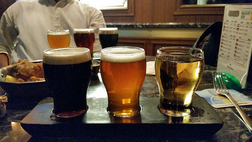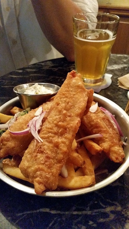 켈키니 생맥주(7000원이던가?)로 시작해서 샘플러(200ml 3잔에 15,000원)를 마셨다. 안주는 피쉬앤칩스 (15,000원).