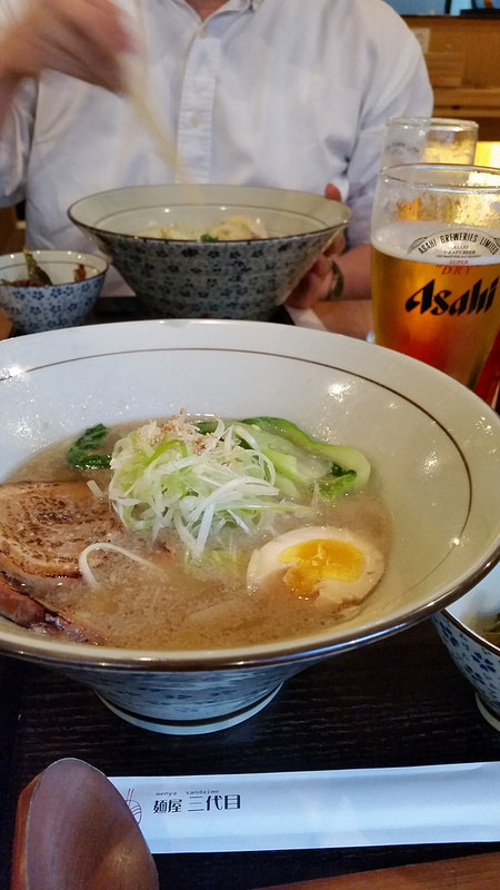 기본 라멘과 반주로 마실 아시히 생맥주를 시켰다. 라멘은 국물이 짰다. 중앙일보의 이 기사에 따르면 국물이 짜야지 면과 균형이 맛는다고 한다.