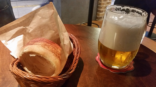 페이스북 필스너우르켈 페이지에서 받은 쿠폰으로 체코식 안주(?) 뜨르들로는 무료 시식. C님은 체코에서 이걸 드셔보셨다고 한다. 막대기 같은데 둘둘감아 구워 만든다고. 여기선 주방에 그런 장비가 없던데 아마 만들어진 걸 데워 나오는 거겠지? 하여튼 체코에서 먹은 것보단 덜 달다고 한다.