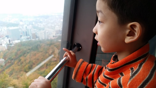그래서 남산타워 아래 버스종점에서 아들을 안고 타워까지 올라감. 끙끙