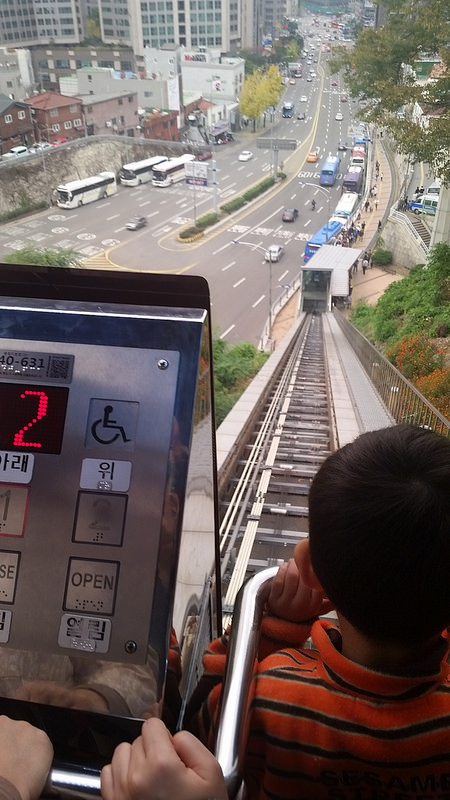 아들이 좋아하지만 비싼 케이블카(성인:6000원, 어린이:3500원)를 편도로 끊어 하산