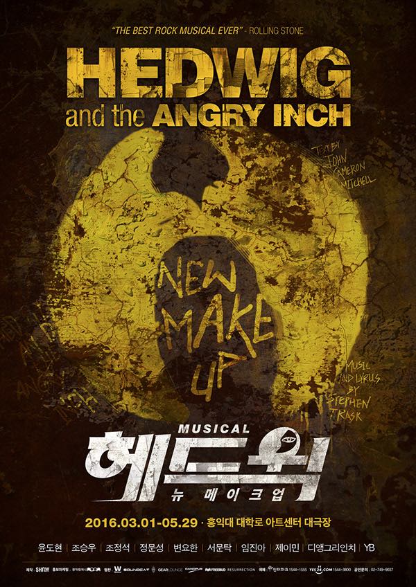 한 번쯤은 보고 싶었지만 여지껏 못 봤던 뮤지컬 헤드윅을 드디어 봤다. 헤드윅의 본토 미국에서 오프브로드웨이에서 공연되던 헤드윅(원제: Hedwig and the Angry Inch)이 2014년에 브로드웨이에 입성했다고 들었는데, 이 영향으로 한국 헤드윅도 대형화 됐다. 특히 이번 국내 공연은 ‘헤드윅: 뉴메이크업’이란 이름으로 공연됐는데, 미국 브로드웨이 버전에 맞춰 내용이 좀 바뀌었다는 것 같다.