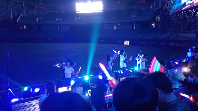 고척돔에는 지정된 몇몇 금요일 경기를 마친 후, 돔구장을 클럽처럼 바꿔서 노는 클럽 데이 행사가 있는데 이날도 이 행사가 있었다. 경기 끝난 후 수훈 선수를 응원단상으로 불러 인터뷰를 한 후 행사가 진행됐다. 행사 전에는 형광봉도 나눠주더라. 홈 팬도, 어웨이 팬도 함께 할 수 있다.