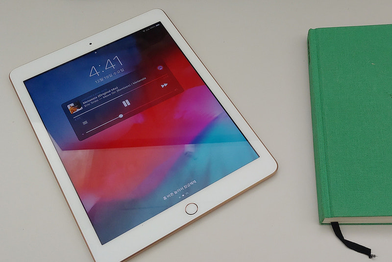올해 3월 출시된 6세대 아이패드이다. 예전에 사용하던 아이패드 (3세대)와 화면 크기는 9.7인치로 동일하지만 베젤이 얇아져 훨씬 크기가 작다. 처음에 받고는 아이패드 미니인 줄 알았다.