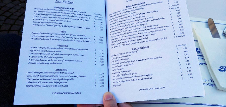 토리노는 ‘최초’란 게 몇 개가 있다. 그 중 페피노(Pepino)는 1939년에 세계 최초로 누가바 같은 형태의 막대 아이스크림을 만든 가게란다. 사실인지는 모르겠으나 메뉴판에 그렇게 적혀 있다. 특허도 받았다고 한다. 1884년부터 젤라토를 만들어왔고 몇몇 인터넷 사이트엔 이 집이 유럽에서 가장 오래된 젤라테리아(아이스크림 집)라는 얘기도 있다. 까리냐노 궁 (Palazzo Carignano) 바로 앞, 혹은 이집트 박물관 뒤의 광장 한 켠에 있다.
