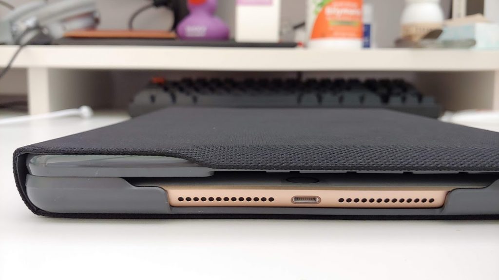 들고 다니기에 조금 부피가 커졌고 무거워졌지만(아이패드 469g + 커버 445g) 아이패드, 아이펜슬, 키보드, 케이스가 하나로 뭉쳐져 편하게 들고 다닐 수 있는 점이 가장 좋다. 10만원이 넘는 가격은 비싼 느낌이지만.