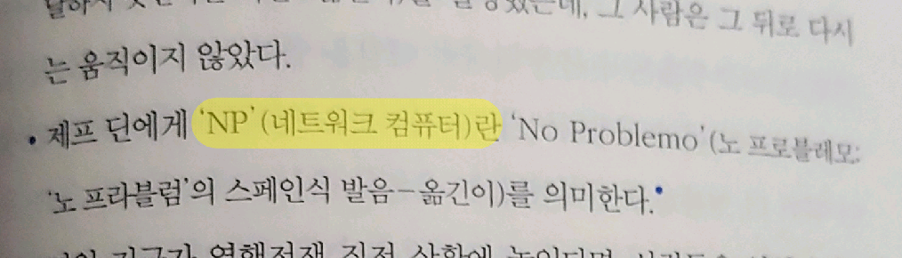 번역서에는 “‘NP'(네트워크 컴퓨터)”로 돼 있지만 원서에는 “(네트워크 컴퓨터)”란 부분이 없다. 이건 옮긴이가 덧붙인 내용이고 틀린 내용이다. NP는 굳이 풀어쓰자면 Non-deterministic Polynomial이고 보통 그냥 “NP”라고 표현한다. 원저자는 이 용어를 이해 못할 사람을 위해 주석을 붙여놨는데 역자는 주석까지 번역해놨으면서도 주석의 내용과는 전혀 다른 “네트워크 컴퓨터”란 틀린 설명을 덧붙여놨다.