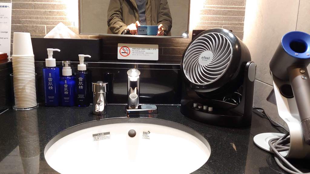 20분 이내로 사용해달라고 한다. 샤워룸 내부도 번쩍번쩍하고 깨끗깨끗하다. 한 켠에 놓인 타올은 비닐로 포장돼 있다. 비닐을 뜯으면 사이즈별로 타올이 3개 들어있더라. 완벽하다. 헤어드라이어 (무려 다이슨) 뿐 아니라 송풍기도 있어서 몸을 말리기가 편하다.