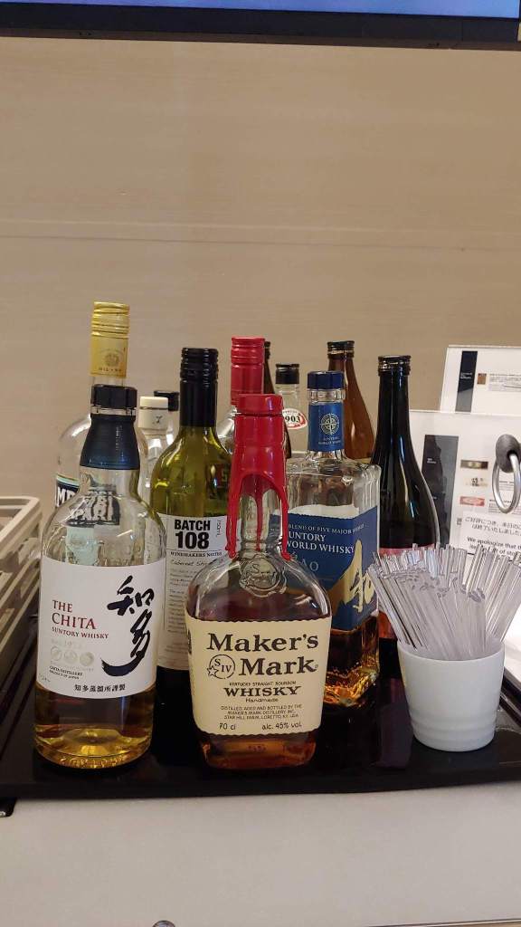 다양한 주류도 있다. 일본인 만큼 여러 사케도 준비돼 있지만 난 맥주 한 잔만. 치타라는 일본 위스키는 잠깐 맛만 봤음 (속쓰림 ㅠㅠ).