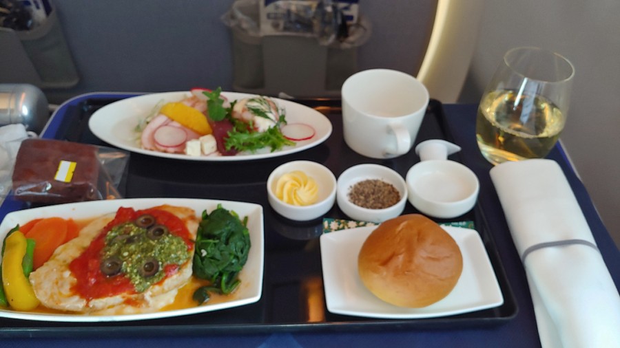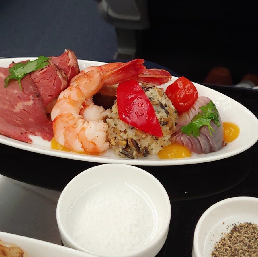 사실 난 일본 국적기의 비즈니스를 타면 전통적인 일본식이 서빙될 줄 알았는데 완전 착각. (지금 찾아보니 사전예약을 하면 일식도 주문가능할 수도. 혹은 단거리라 불가능할 수도.)