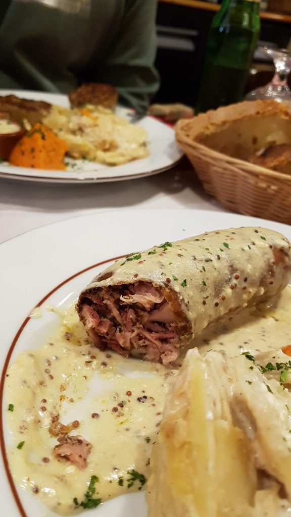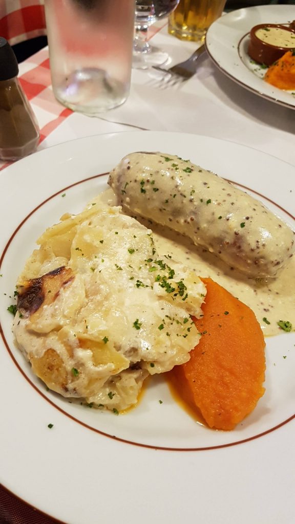 메인디쉬인 리옹식 순대는 혀에 익숙한 소스 덕분인지 먹을만 했다. 우리나라 순대와는 많이 다르다. 한국 순대는 안에 당면을 넣는다면 여기는 안에 고기를 넣는 식.