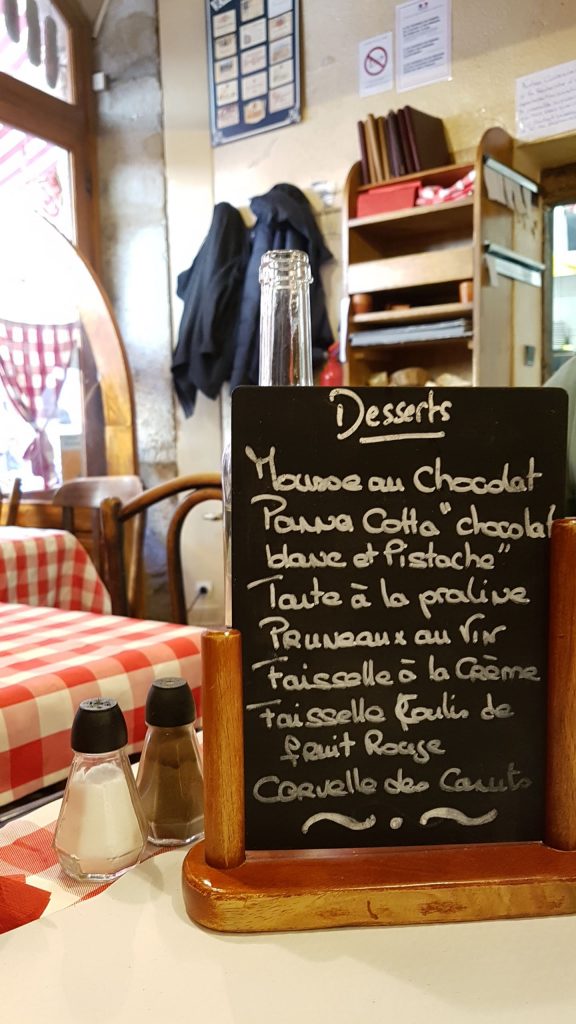 우리는 12시 정도에 가서 막바로 입장 가능했는데 식사 시간에 좀 늦게 오면 밖에서 대기해야할 정도로 사람이 많다. 테이블 간 간격은 매우 좁고 복작복작하다. 그르노블에서 간 식당들은 좌석 공간이 넉넉했었기 때문에 비교가 되었다.
