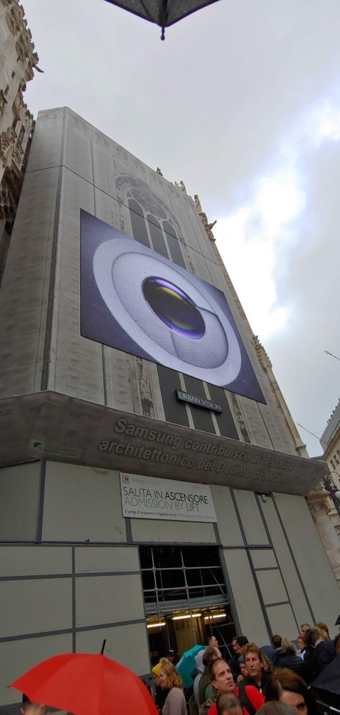 성당 뒷쪽의 엘레베이터용 입구에서 한참 줄을 서서 기다린 후에야 엘레베이터를 타고 루프탑으로 올라갈 수 있었다. 관람 순서는 루프탑 -> 성당 실내. 밀라노 대성당은 루프탑의 매력이 뛰어나 사진들도 대부분 루프탑에서 찍은 것들.