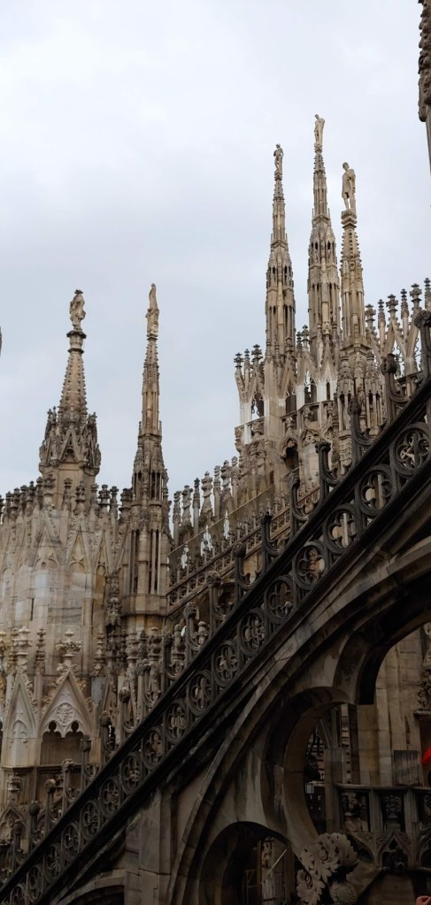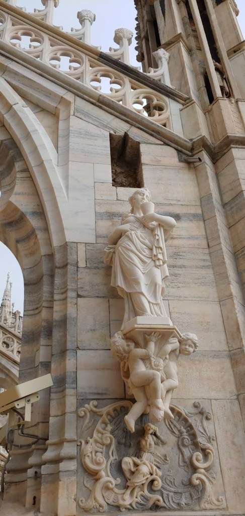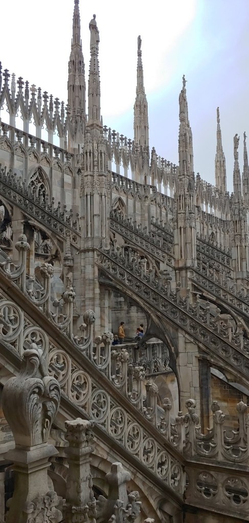 루프탑이 밀라노 듀오모 관람의 백미라는 건 맞는 얘기다. 섬세한 장식을 눈 앞에서 볼 수 있다. 굳이 저렇게까지 해야했을까 싶은 곳에도 장식을 해놓았다. 곳곳이 공사 중이었지만 볼거리는 충분했다.