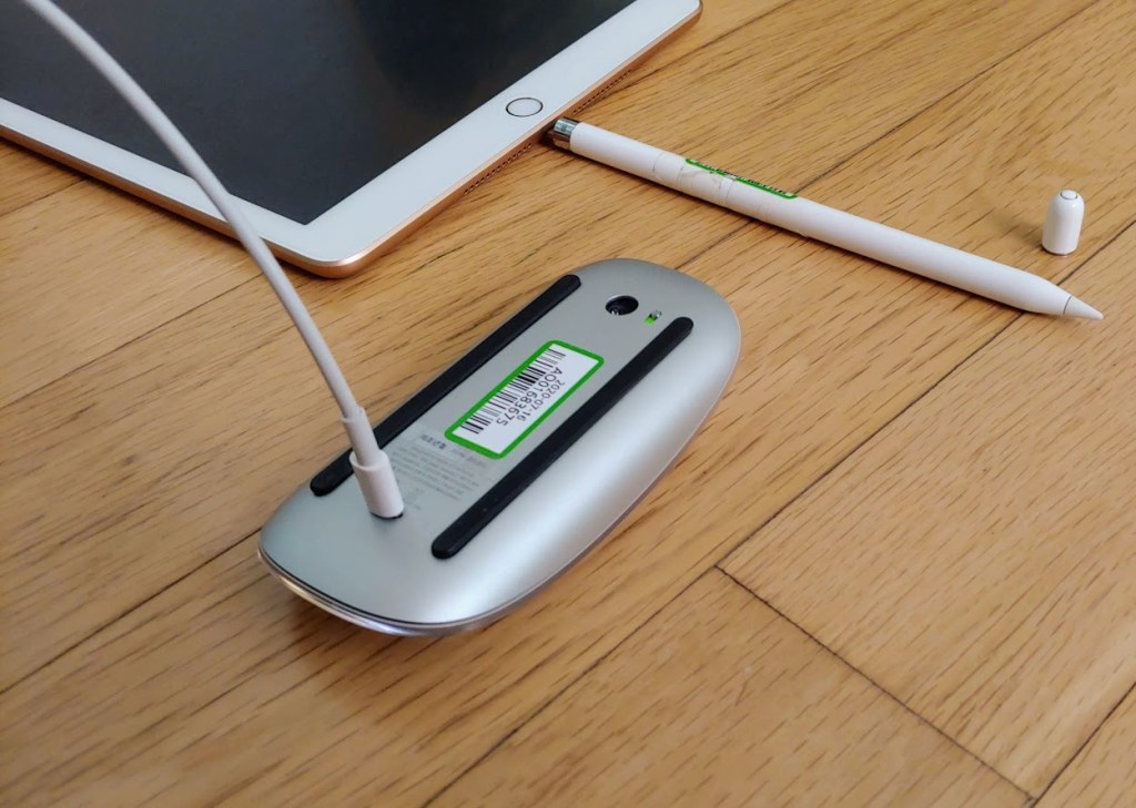 매직마우스2는 마우스를 뒤집어서 배(?)에 충전기를 꽂는 모양새이고 애플펜슬은 아이패드의 똥꼬(?)에 펜을 꽂는 모양새. 당연히 충전 중에는 두 제품 모두 사용 불가.