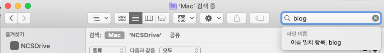 이제 설정한 단축키를 이용하여 파인더에서 검색을 해보자. 아래 그림처럼 검색 창 아래 “이름 일치 항목”이란 게 생기며, 클릭을 하면 파일 이름에 매칭되는 경우만 검색 결과가 노출된다.